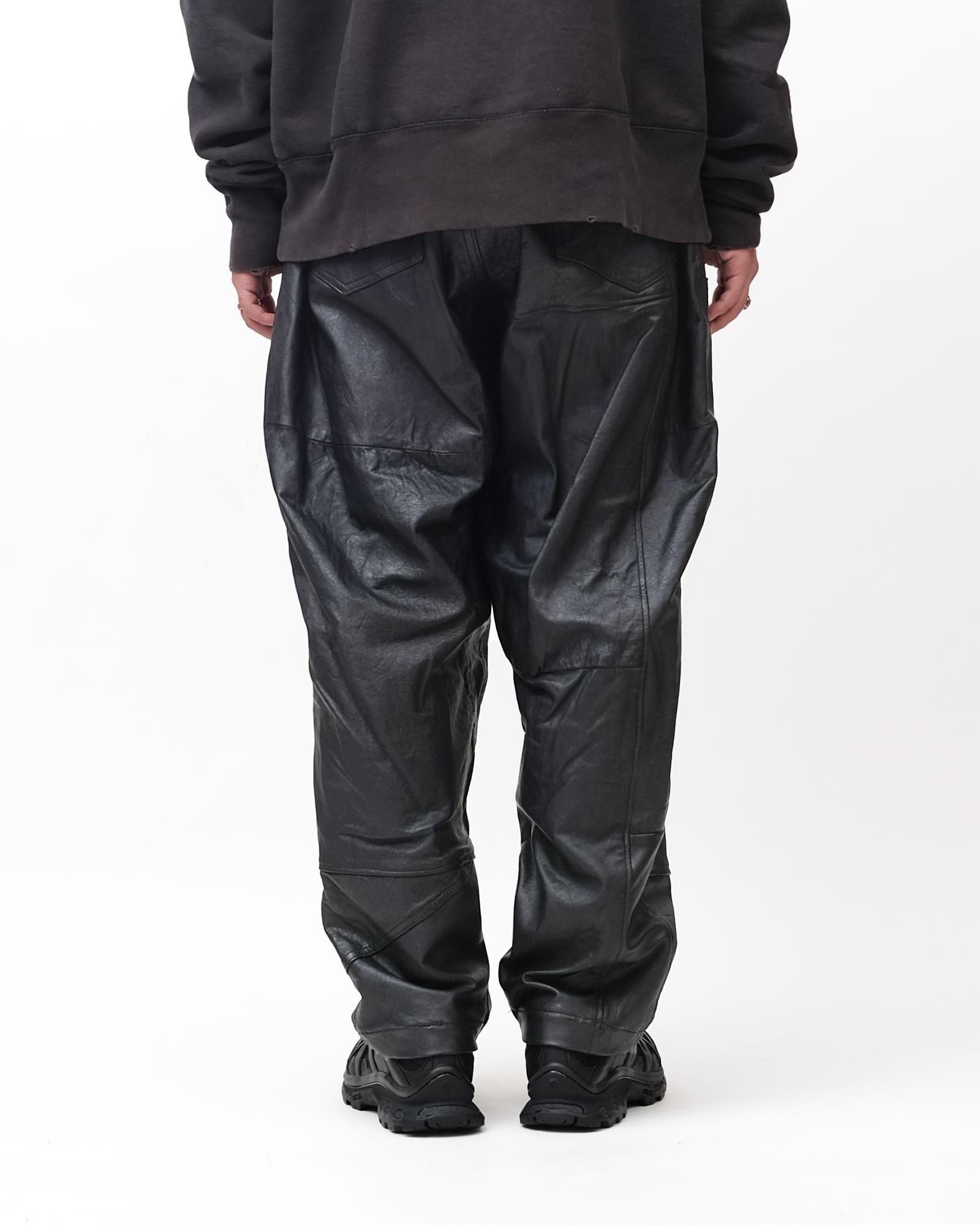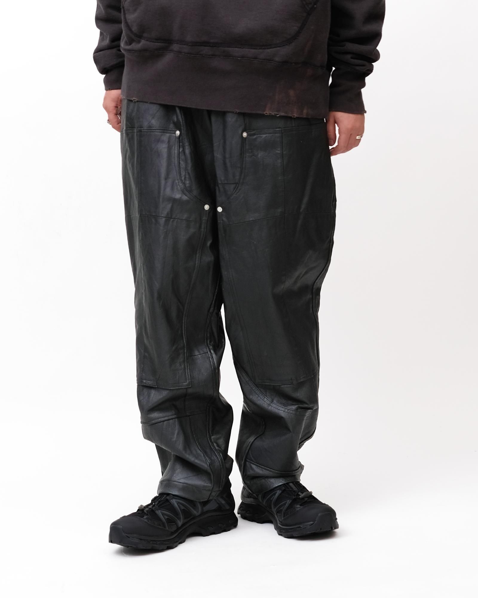DOUBLE KNEE PANTS #LEATHER BLACK size:L type:D [OP-501]