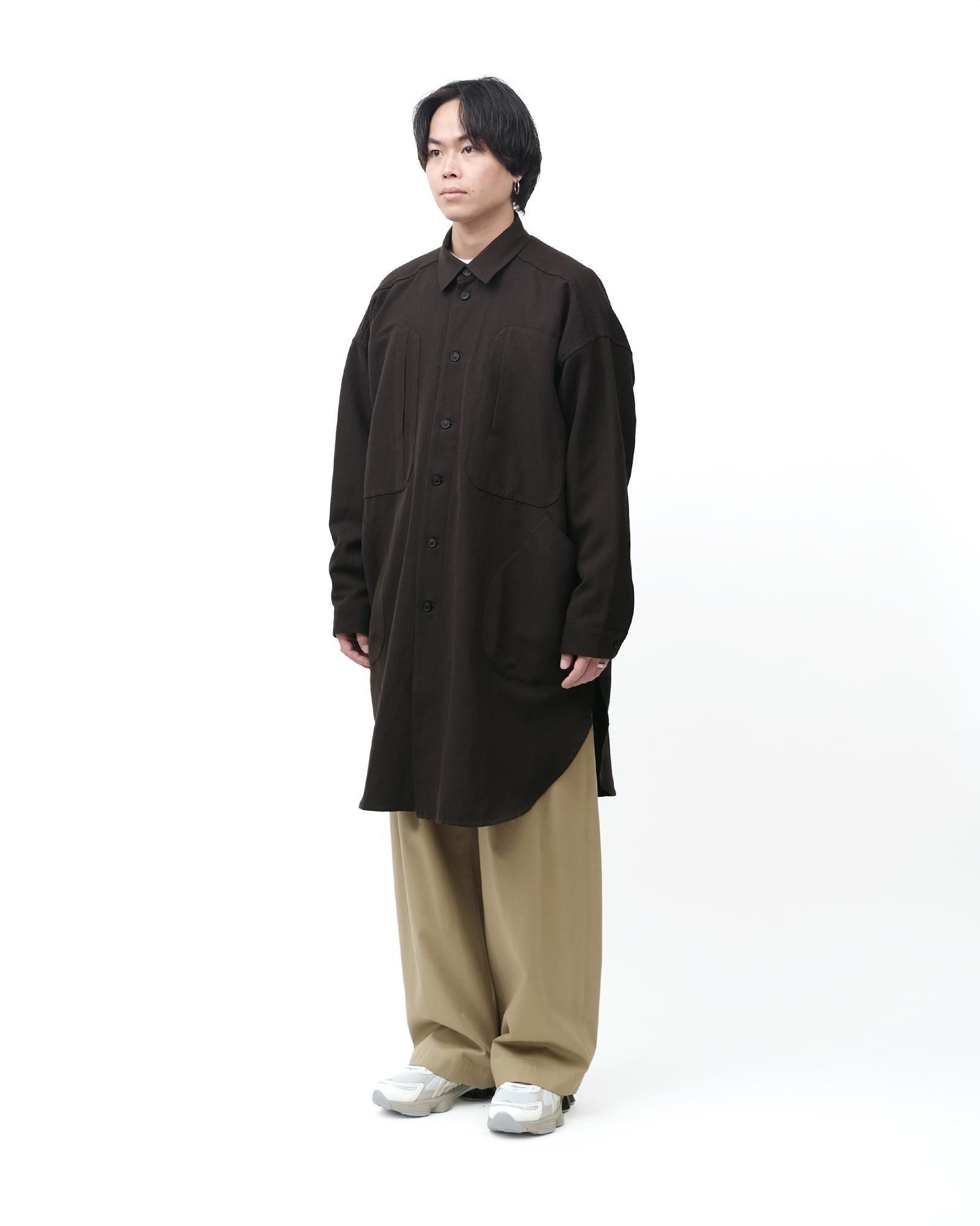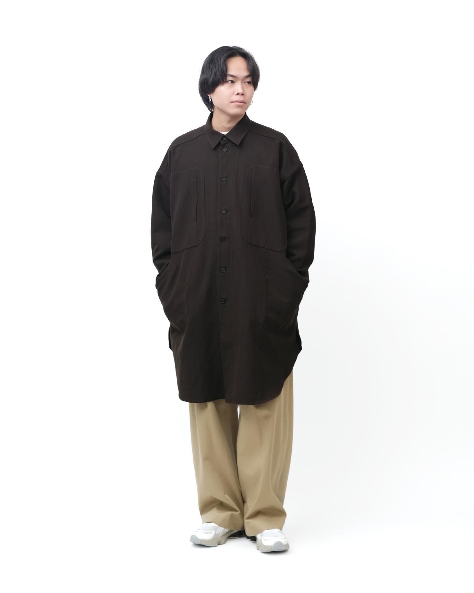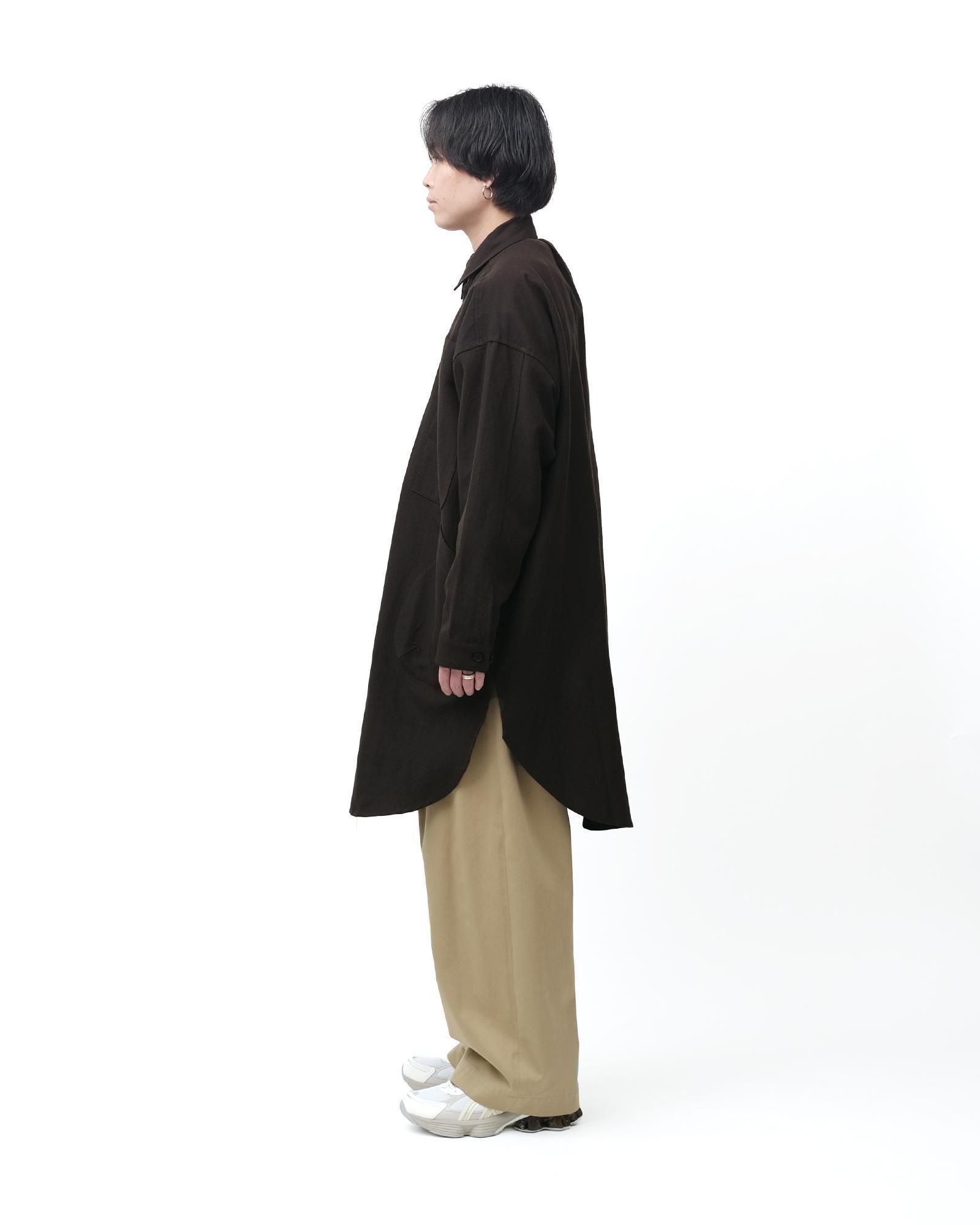 LONG DUST COAT - WASHED WOOL LINEN TWILL #DK BROWN [O20VT1]